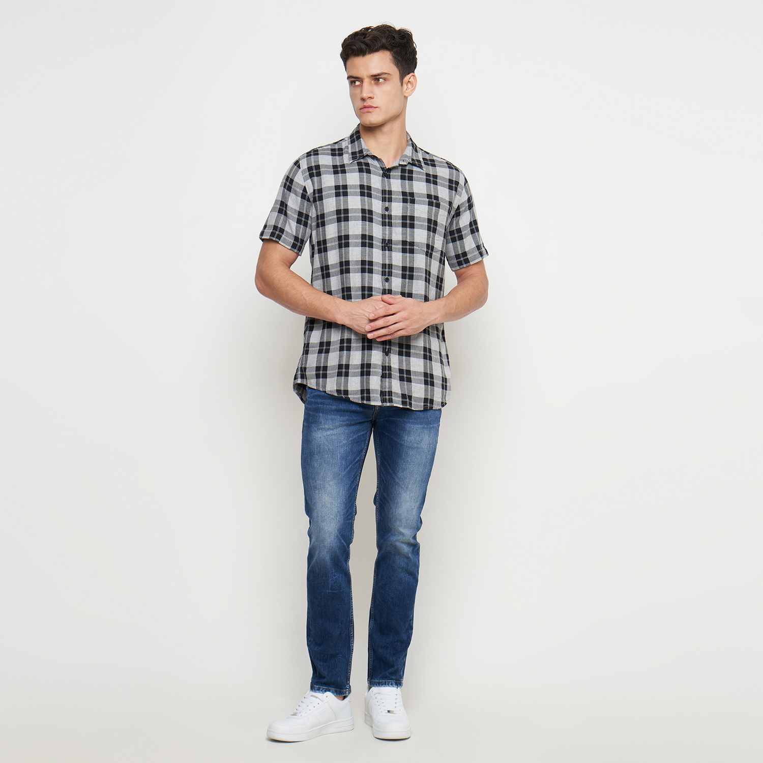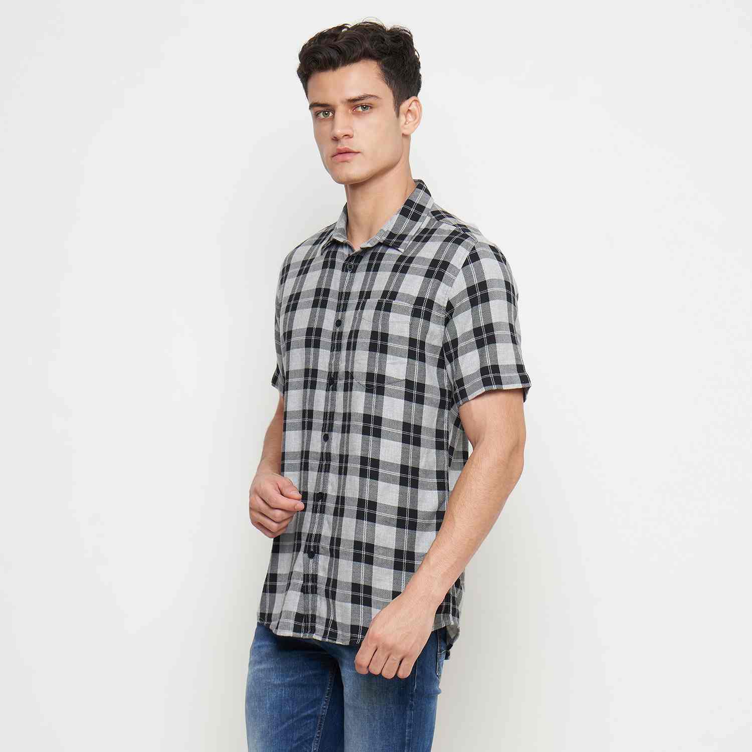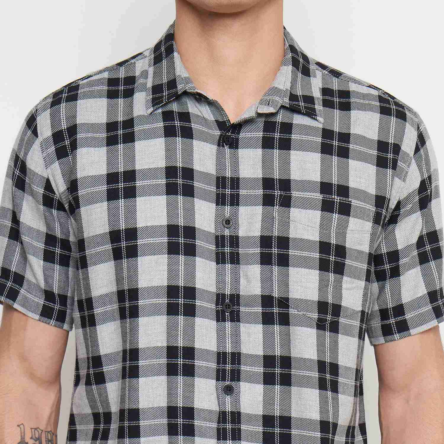 KEMEJA PRIA LENGAN PENDEK MOTIF KOTAK REGULAR FIT Bahan : 100% COTTON Warna : GREY Fitting : REGULAR Tipe Kain : RIGID