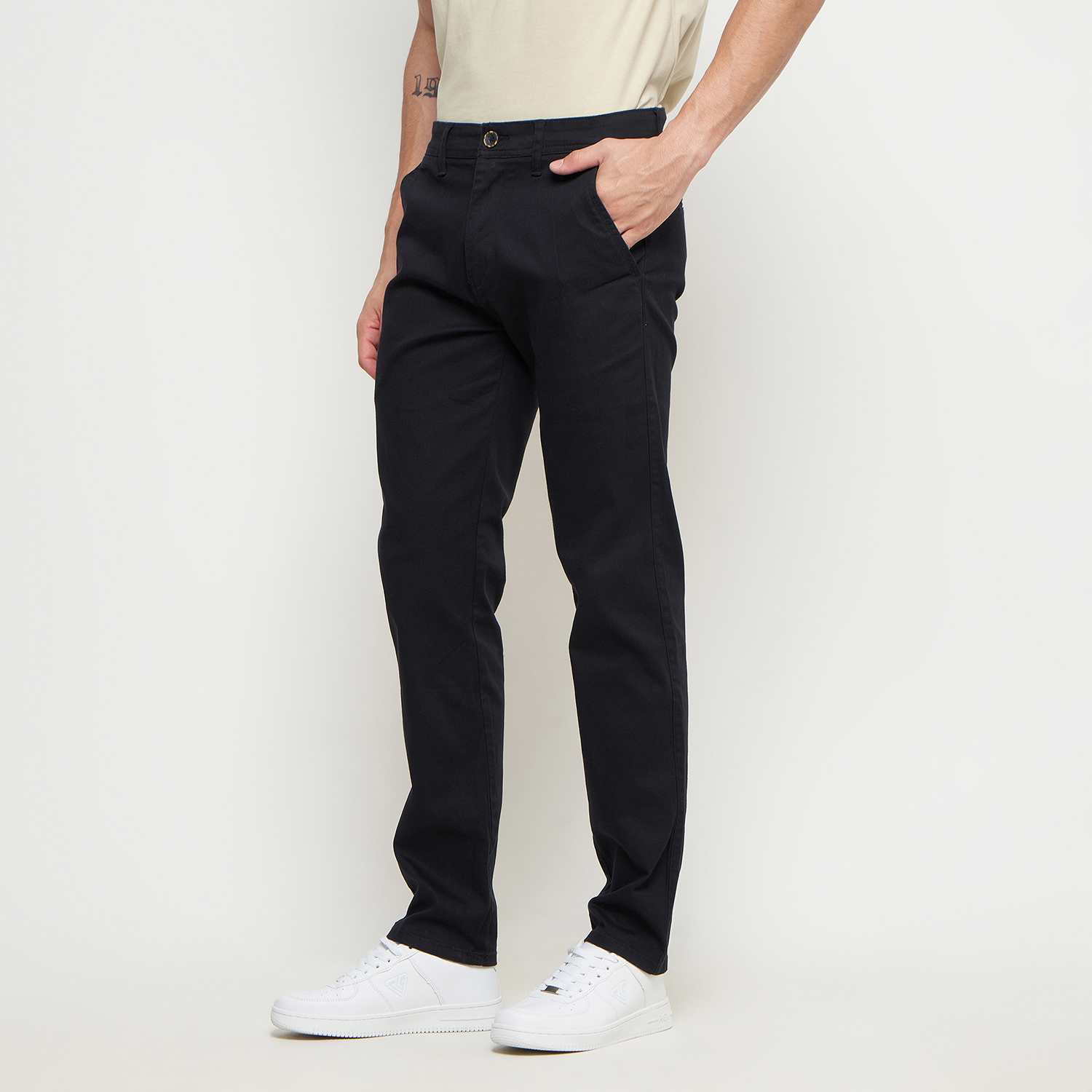 CELANA CHINOS PANJANG PRIA SLIMFIT Bahan : 98% Cotton 2% Elastane Warna : BLACK Fitting : SLIM Tipe Kain : STRETCH (Melar)