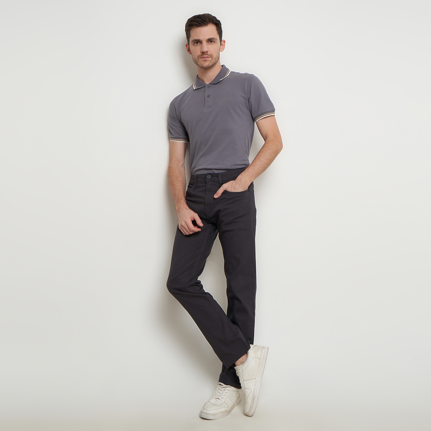 Bahan : 98% Cotton 2% Spandex ; Warna : SPECTRA ; Fitting : REGULAR ; Tipe Kain : STRETCH (Melar)