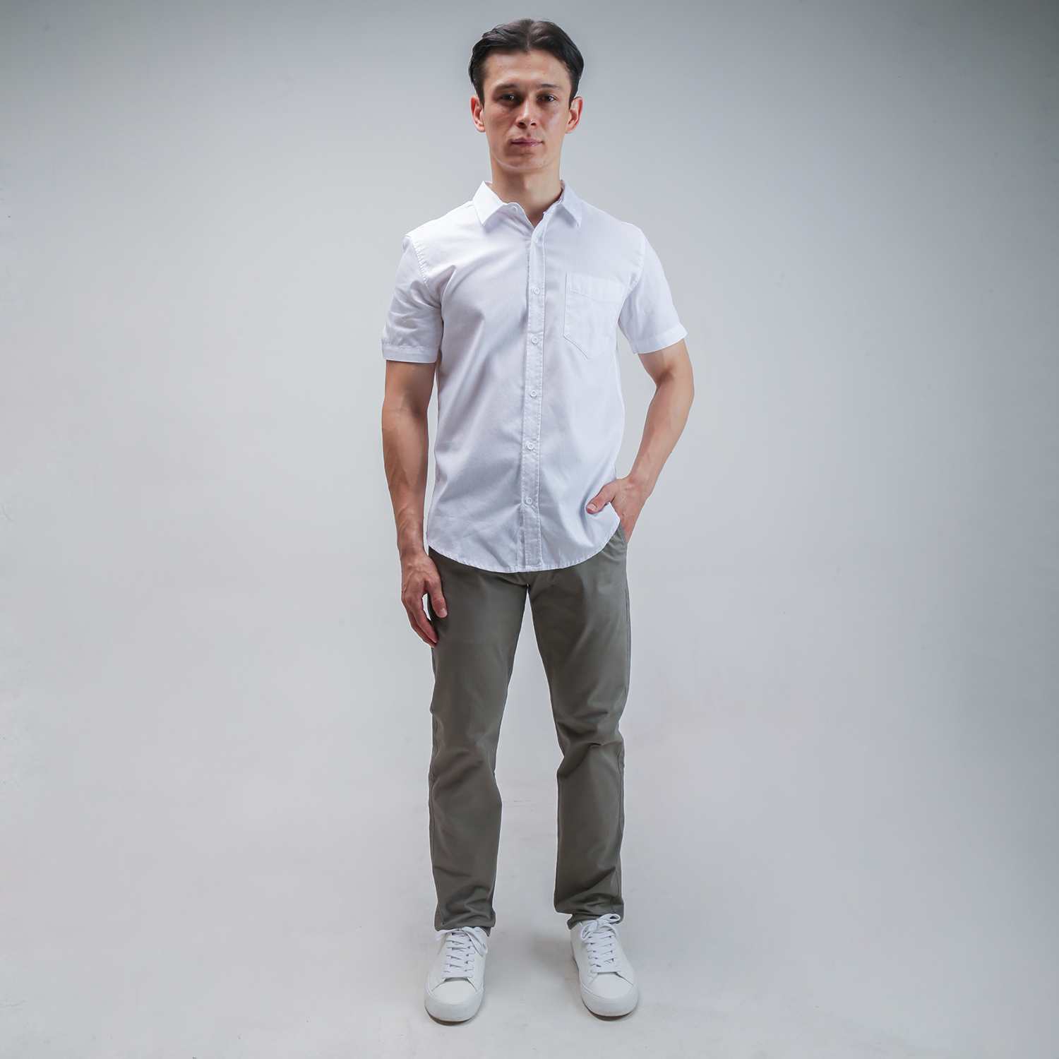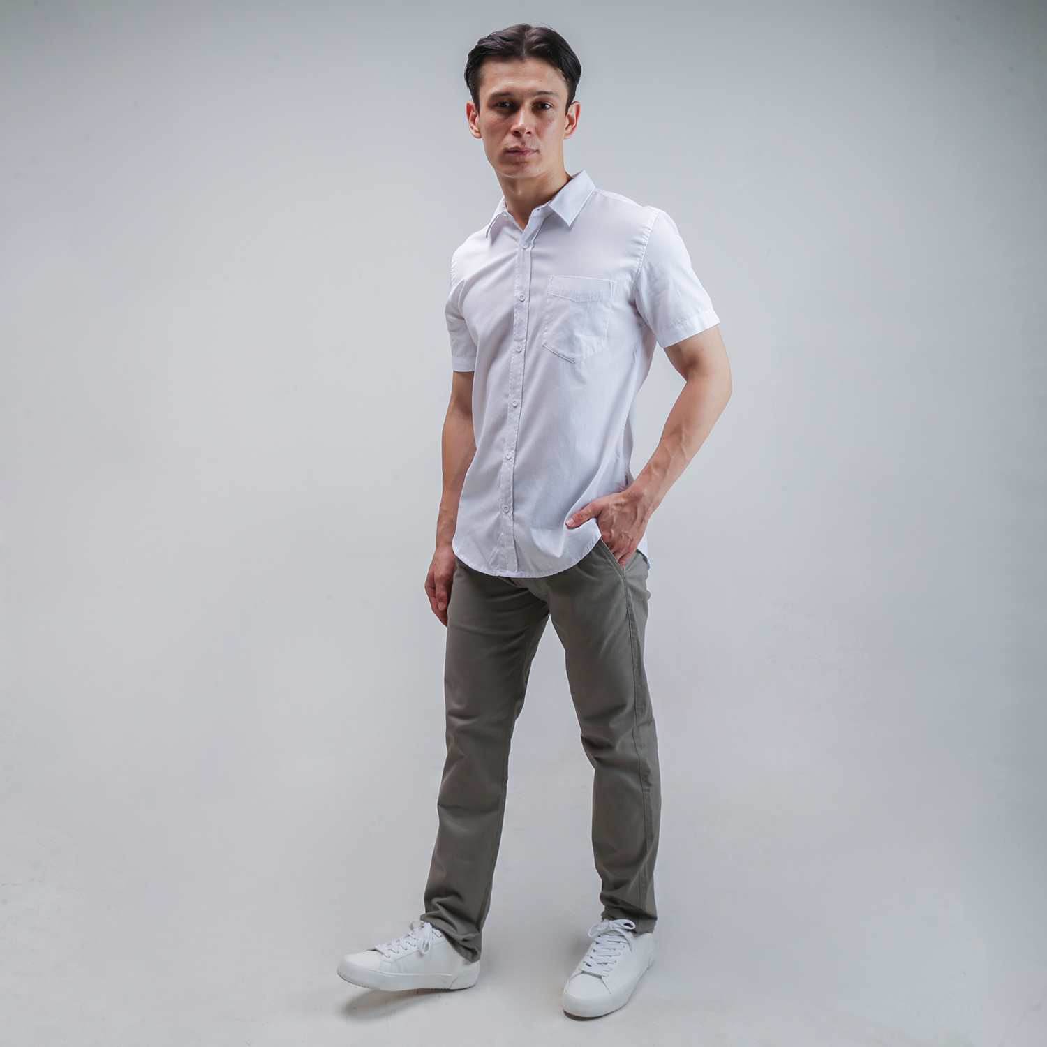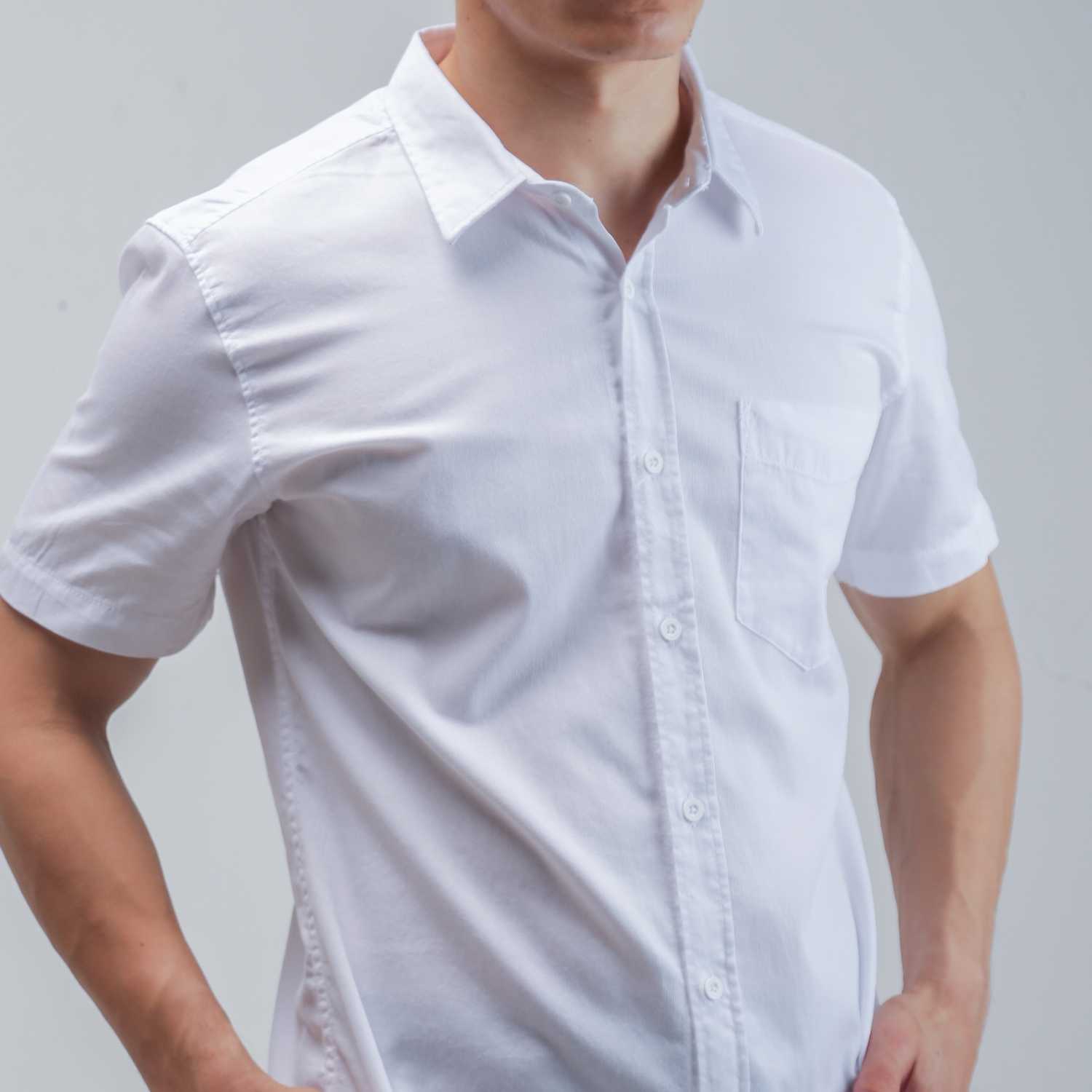 Bahan : 100% COTTON ; Warna : WHITE ; Fitting : REGULAR ; Tipe Kain : RIGID (Tidak Melar)