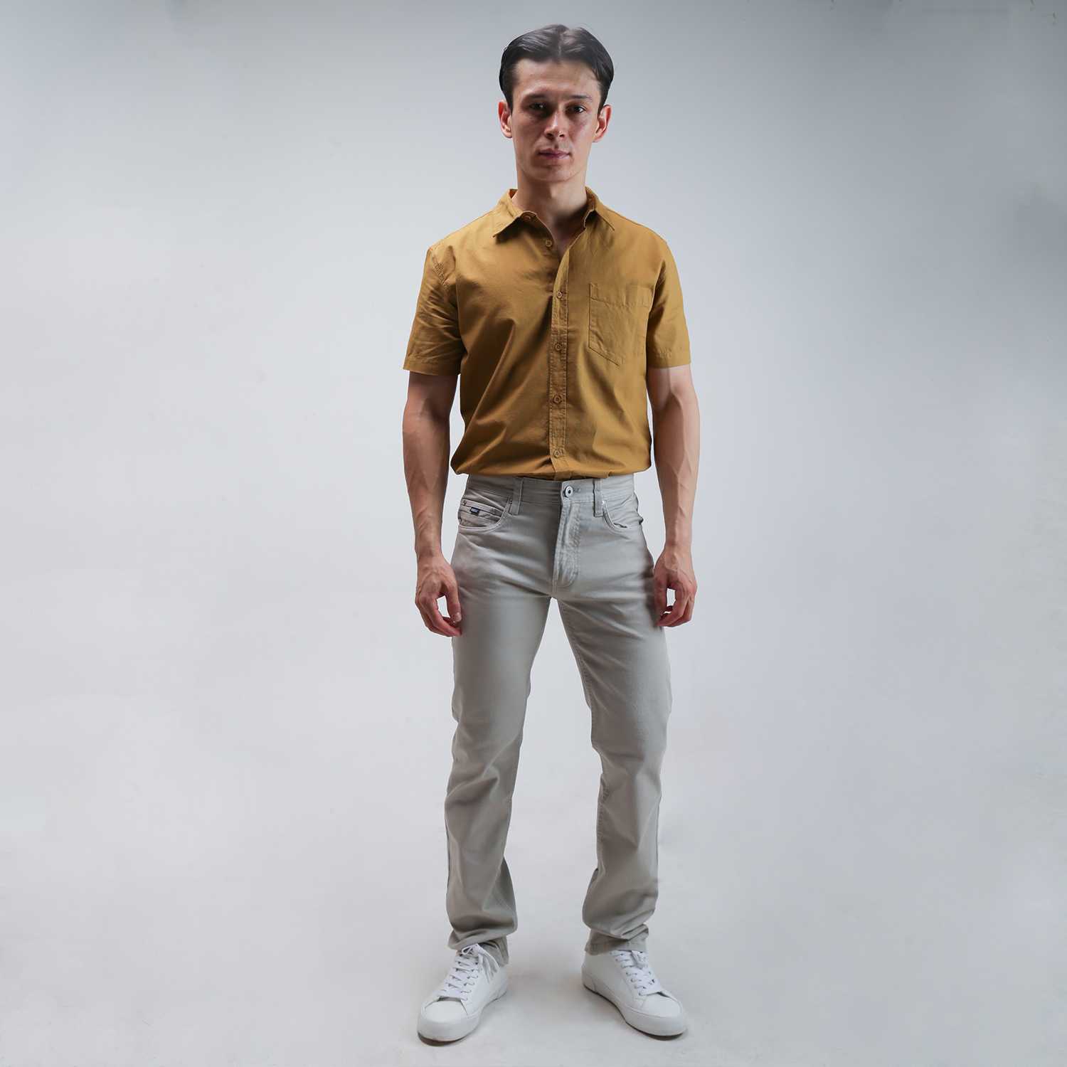 Bahan : 98% Cotton 2% Spandex ; Warna : CREAM ; Fitting : REGULAR ; Tipe Kain : STRETCH (Melar)