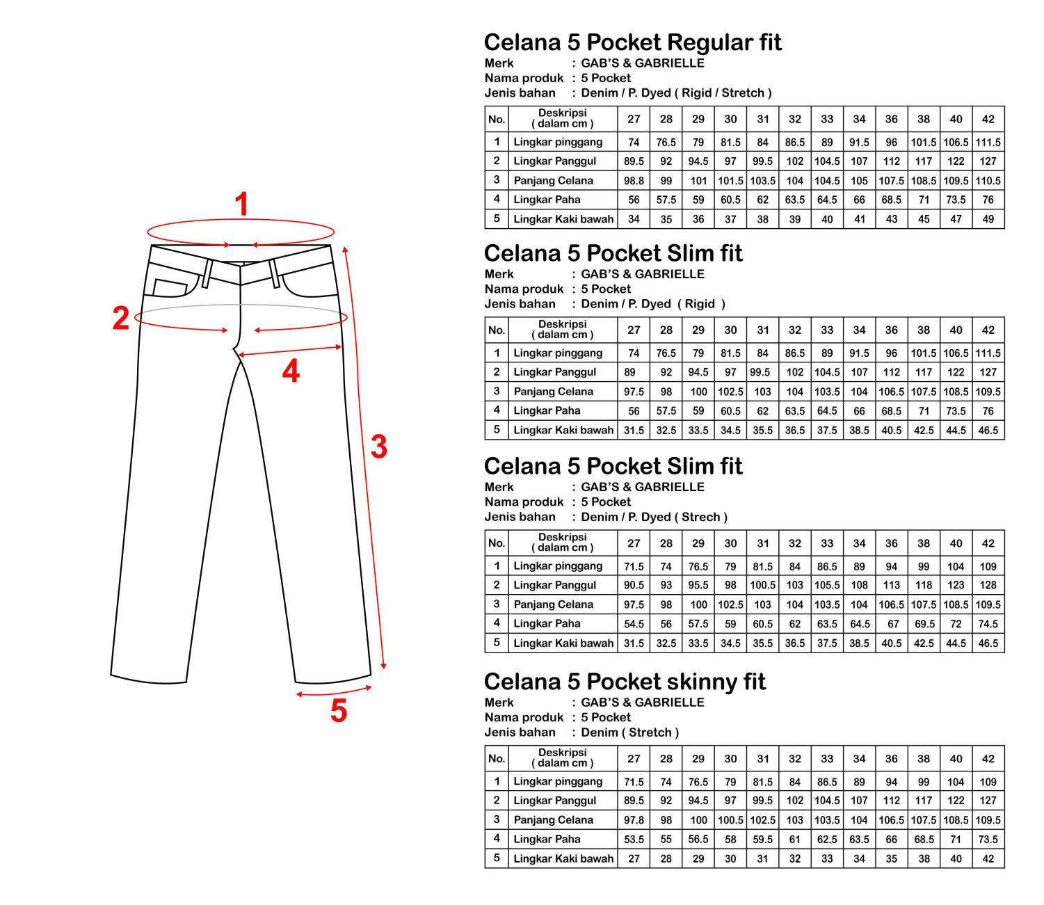 Lingkar pinggang x Lingkar pinggul x Panjang celana
