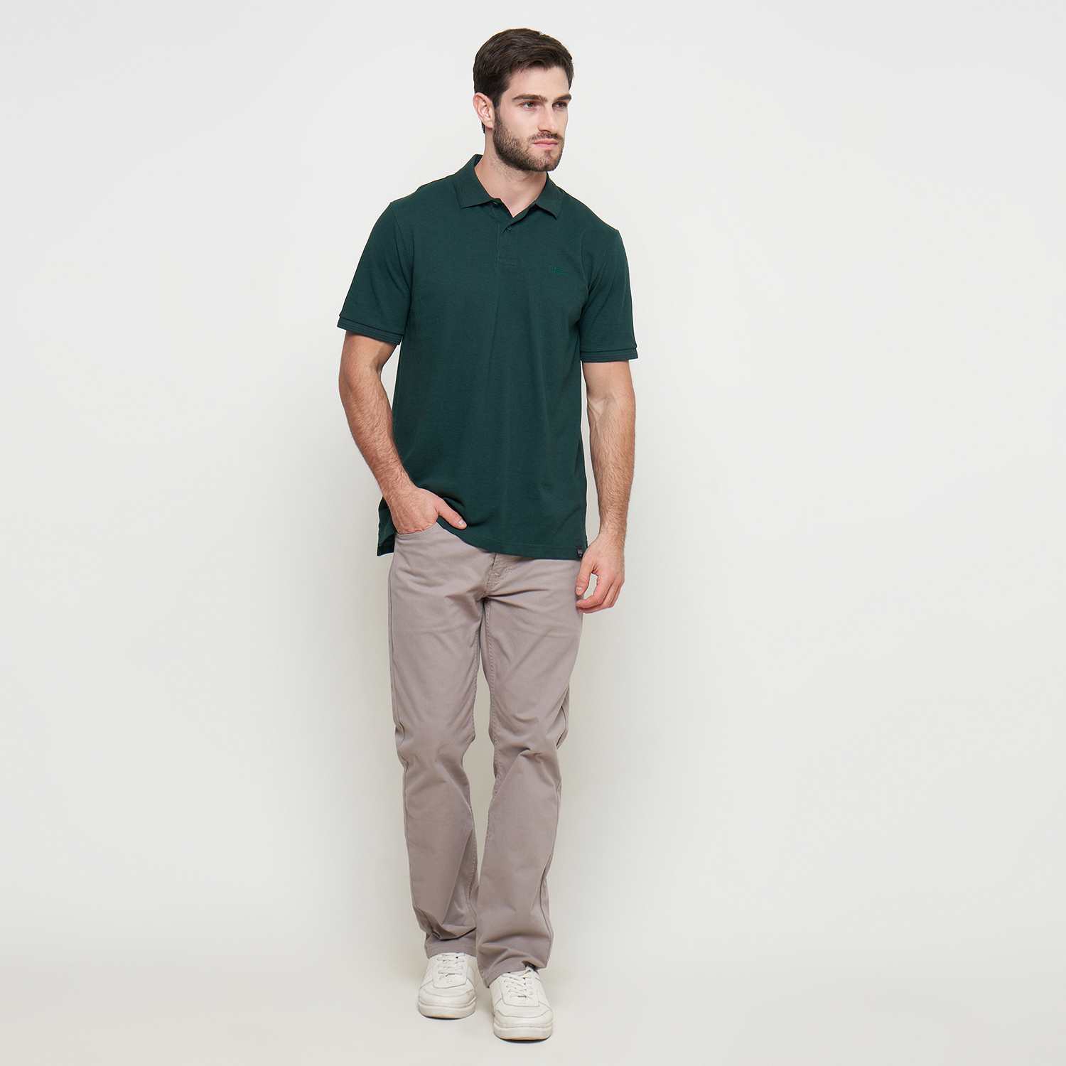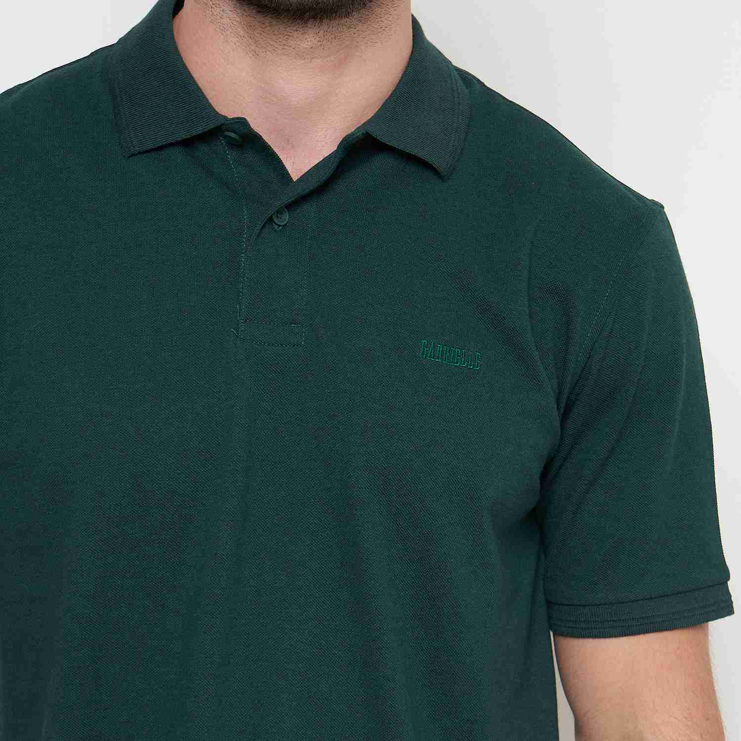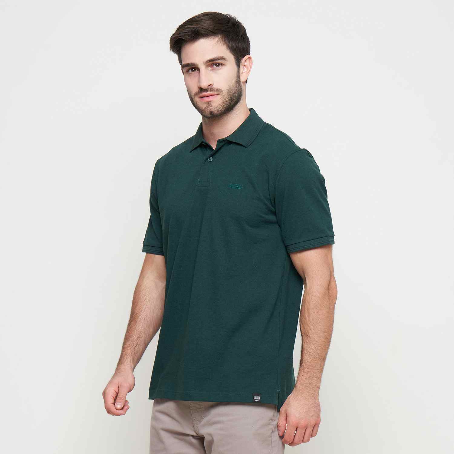 KAOS POLO PRIA LENGAN PENDEK REGULAR FIT Bahan : 60% COTTON 40% POLY ; Warna : Dark Green ; Fitting Reguler Fit